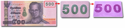 tinta OVI® incluida en las rupias mediante calcografía